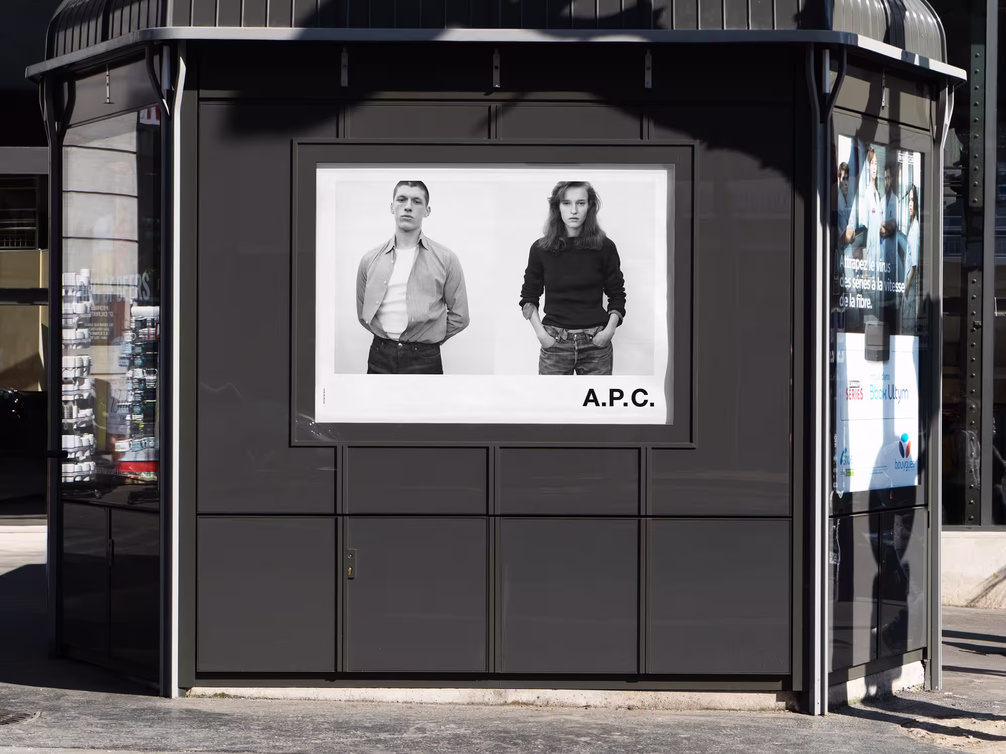 For their first out of home campaign, we designed a 100% kiosk plan for A.P.C. Kiosks are part of parisian heritage and DNA. That's why it felt obvious for us for this denim-focused campaign.